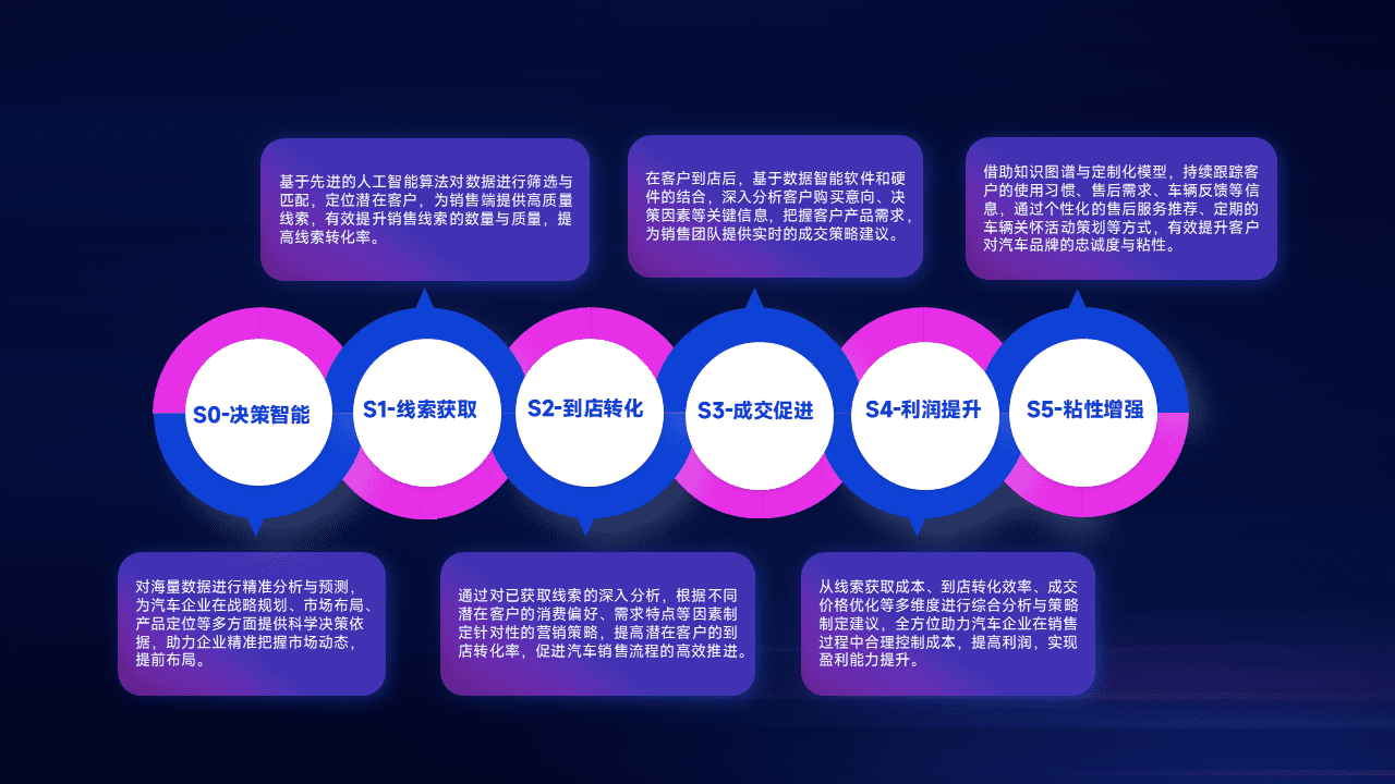 通过拓宽潜在客户来源、、、优化线索分配并提高到店转化率,,以增强销售效率。。同时,,利用线索数据不断优化分析模型,,,有效提升转化率,,扩大营销影响力。。